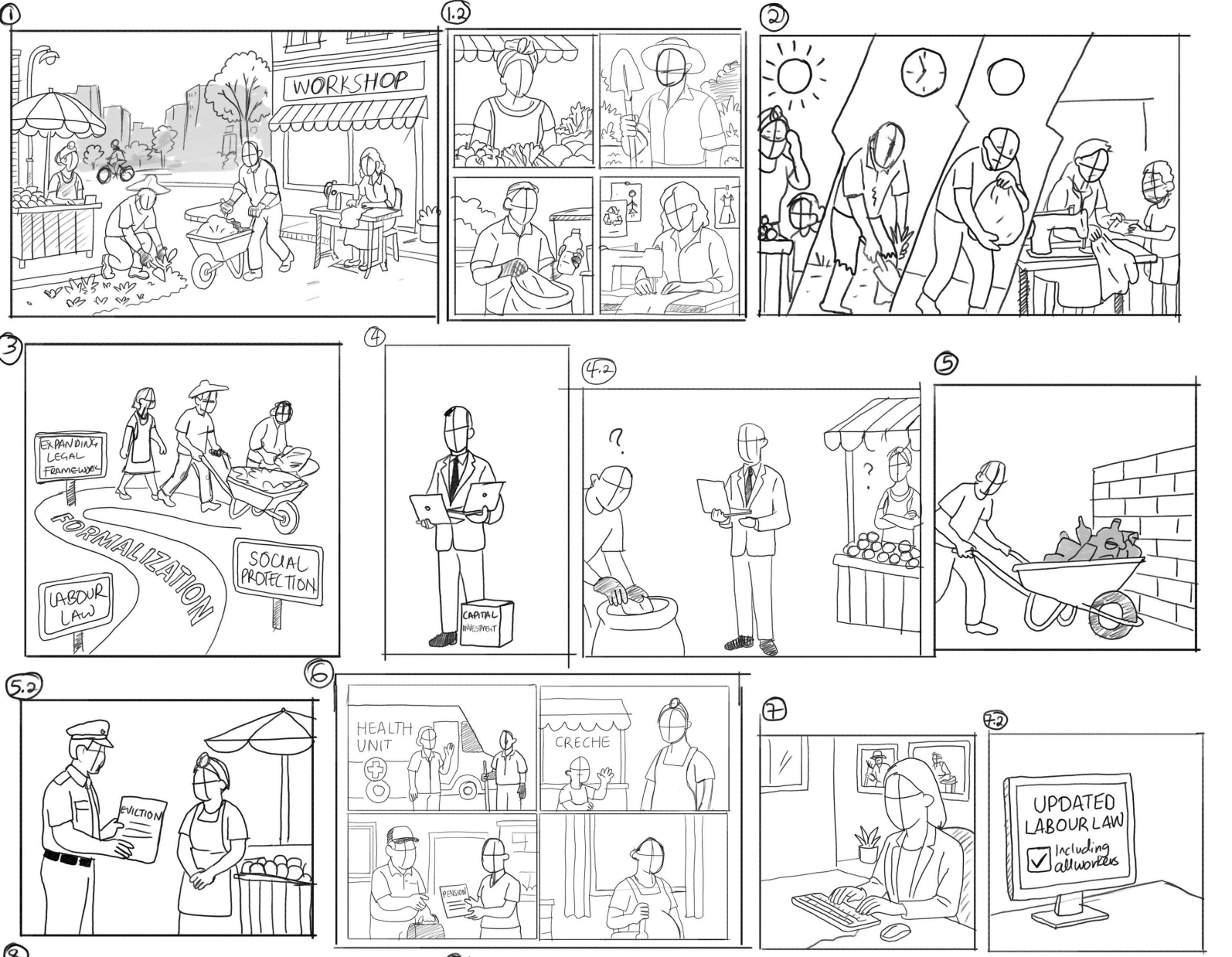 A short animated explainer created for WIEGO, illustrating the realities of workers in the informal economy and the importance of recognition, rights, and secure livelihoods. Through simple visual storytelling and motion, the animation translates complex ideas about informal work into an accessible narrative. The piece highlights the everyday experiences of workers such as street vendors, domestic workers, and waste pickers, while explaining WIEGO’s role in supporting research, advocacy, and collective action to improve working conditions. The animation was designed to communicate these ideas clearly to a wide audience, helping bring visibility to the millions of workers whose labour sustains cities and economies around the world.